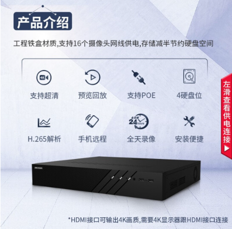 商品名称:海康威视网络主机监控硬盘录像机32路4盘4K超高清16路POE网线供电报警侦测NVR兼容8T硬盘 DS-7932N-R4/16P