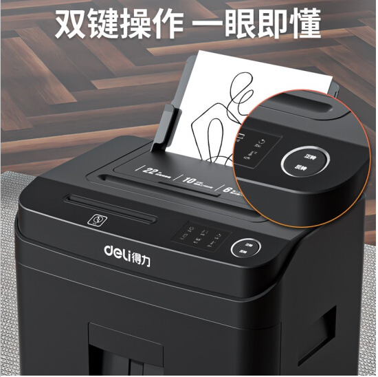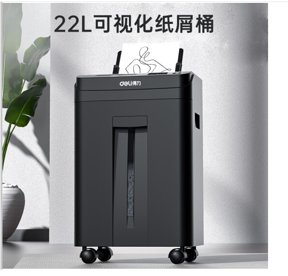 商品名称:得力(deli) 5级高保密全自动办公家用文件粉碎机碎纸机(自动进纸80张 手动6张 碎纸10分钟 22L) 33679
