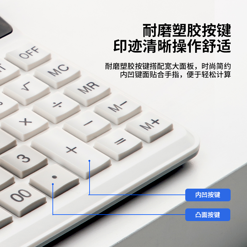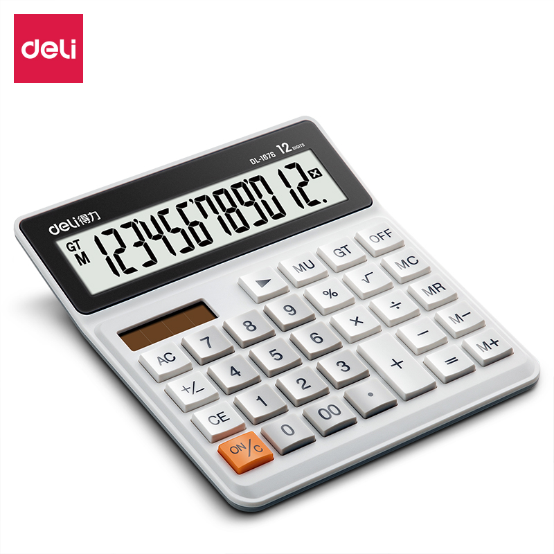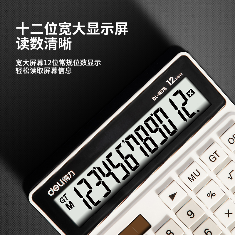 商品名称:得力(deli)双电源电脑按键计算器 12位大屏横式桌面计算机 财务及银行人员适用 办公用品 白色2136