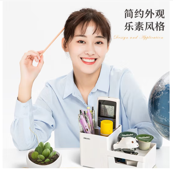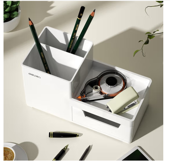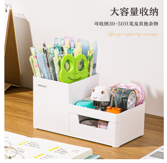 商品名称:得力(deli)居家文具收纳盒 小物件桌面收纳盒笔筒 首饰收纳盒 桌面储物盒 美化收纳盒 浅白8907