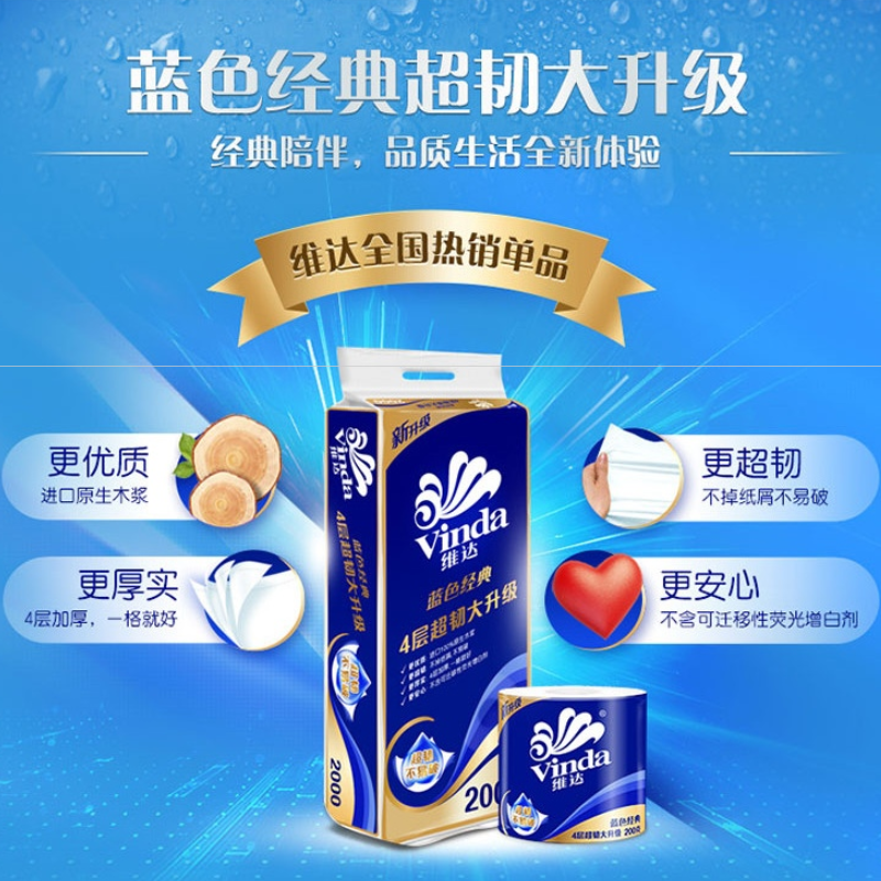 商品名称:维达(Vinda)v4073-1超韧有芯加厚4层2000克卷纸(单位:提)