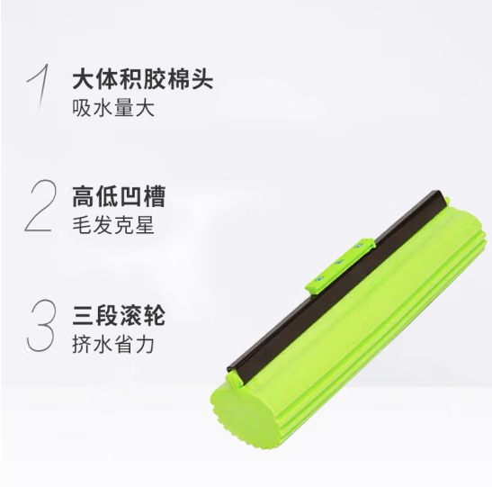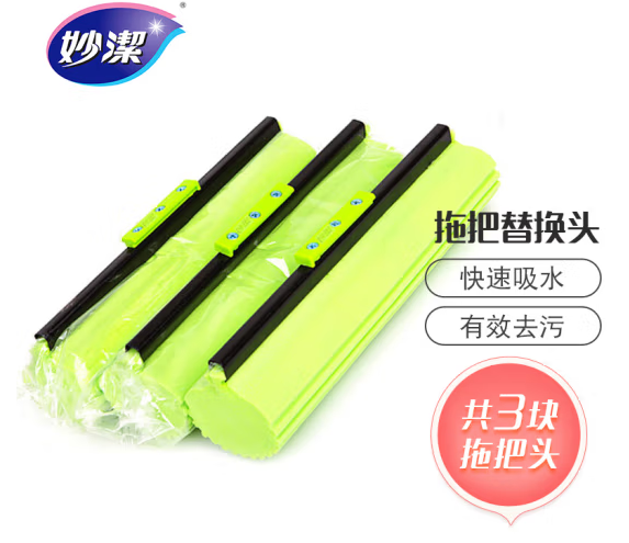 商品名称:妙洁 胶棉吸水拖把替换头 拖把头 3入装