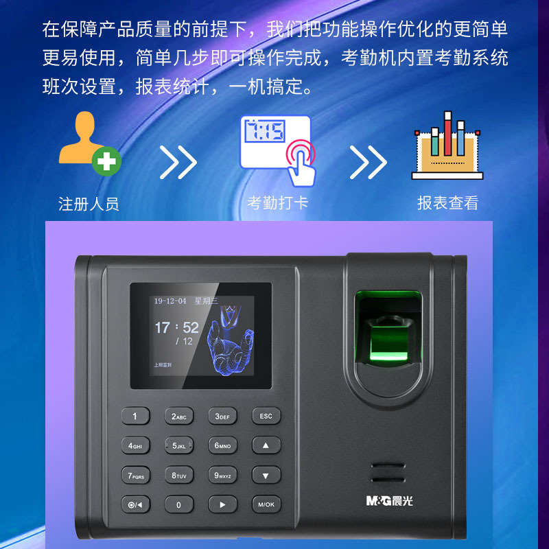 商品名称:晨光简易通指纹考勤机AEQ96706/台