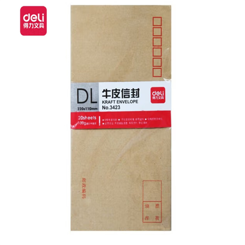 商品名称:得力(deli)3423 信封 牛皮纸 5号(20个/包)