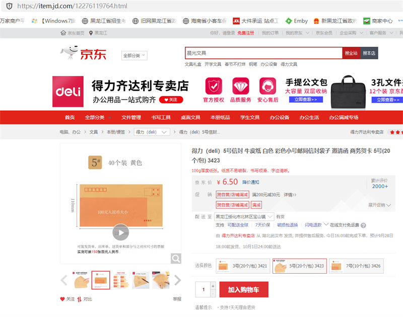 商品名称:得力(deli)5号信封 牛皮纸 信封袋子 5号(20个/包) 3423
