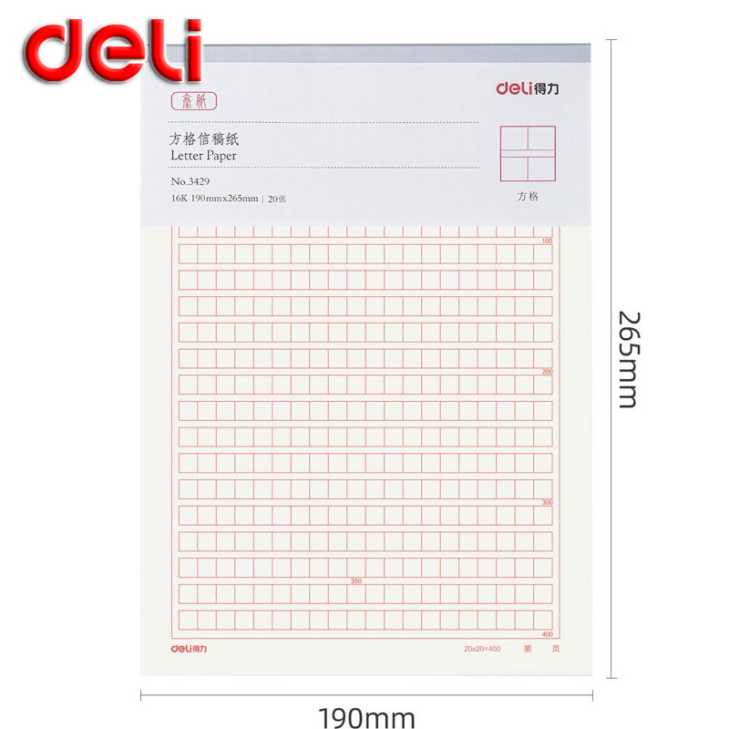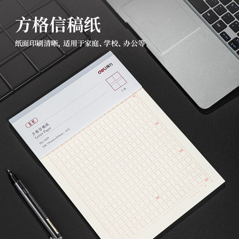商品名称:得力(deli) 单线双线方格信纸16K作文本草稿纸 方格信稿纸3429
