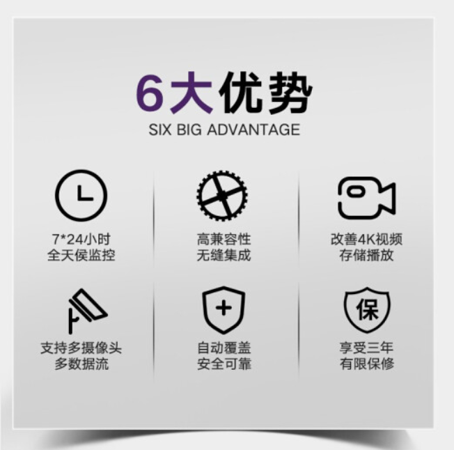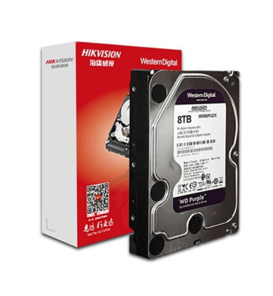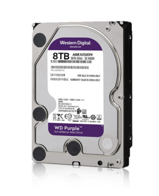 商品名称:海康威视监控硬盘 西部数据机械硬盘8TB 商用安防视频录像机专用紫盘 7200转 64MB SATA6Gb/秒 WD82PURX